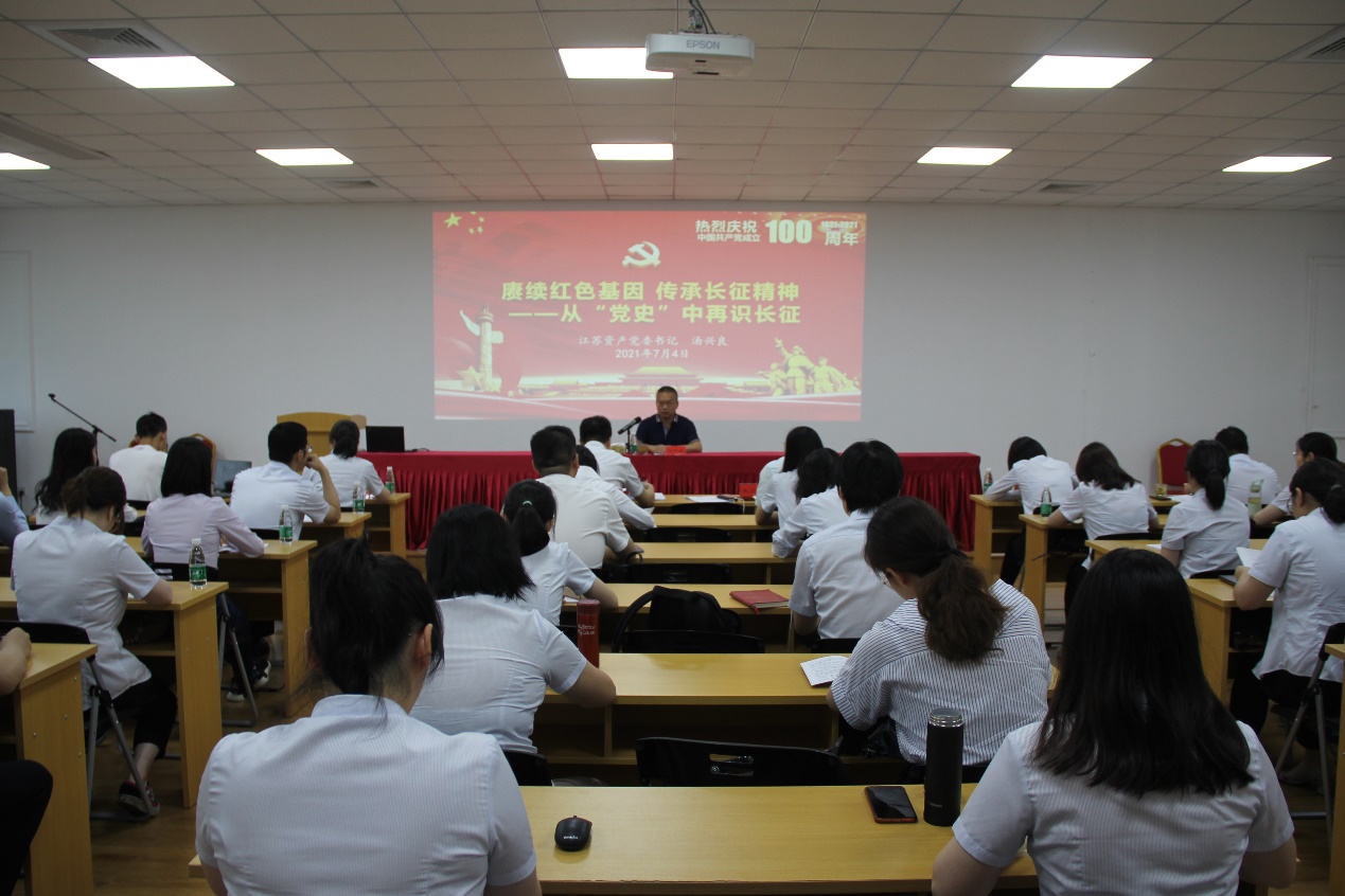 为深入学习贯彻习近平总书记在庆祝中国共产党成立100周年大会上的重要讲话,推进党史学习教育走深走实,7月4日上午,集团党委委员、副总裁,江苏资产党委书记、董事长汤兴良向全体党员干部讲授主题为《赓续红色基因、传承长征精神——从党史中再识“长征”》的专题党课。